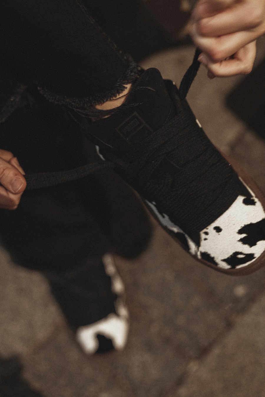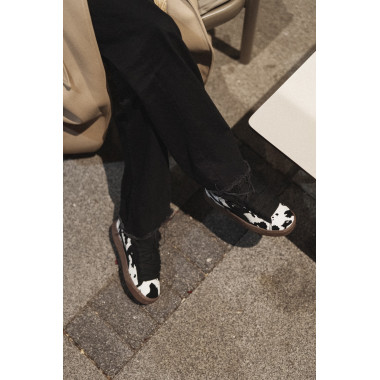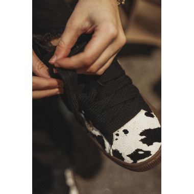 Gornji deo od kvalitetnog brušenog antilopa, začinjen printom inspirisanim kravljom kožom, daje im autentičan, upečatljiv izgled i detalj je zbog kog outfit odmah deluje ozbiljnije i zanimljivije.