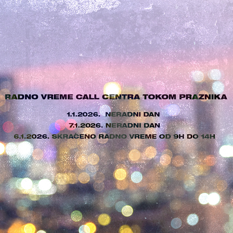 Nastojimo da budemo što precizniji u opisu proizvoda, prikazu slika i samih cena, ali ne možemo garantovati da su sve informacije kompletne i bez grešaka. Svi artikli prikazani na sajtu su deo naše ponude i ne podrazumeva da su dostupni u svakom trenutku. Raspoloživost robe možete proveriti pozivom Call Centra na 011 422 1440.
